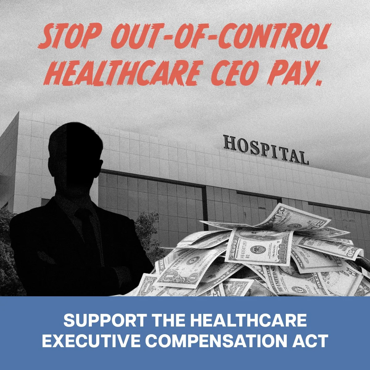 It’s time to stop out-of-control executive pay in healthcare. With the federal government slashing billions from healthcare funding, we need hospital revenues to go to patient care, not excessive executive pay.